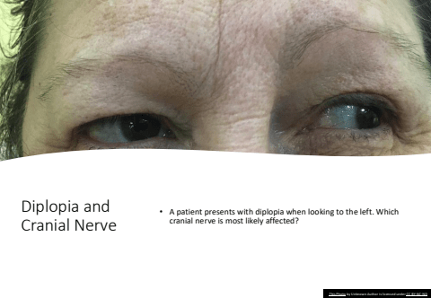Diplopia and Cranial Nerve%u2022 A patient presents with diplopia when looking to the left. Which cranial nerve is most likely affected?This Photo by Unknown Author is licensed under CC BY-NC-ND