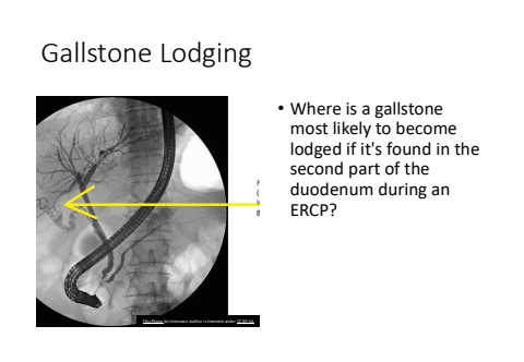 Gallstone Lodging%u2022 Where is a gallstone most likely to become lodged if it's found in the second part of the duodenum during an ERCP?This Photo by Unknown Author is licensed under CC BY-SA
