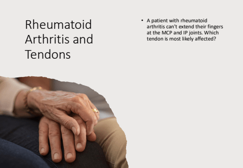 Rheumatoid Arthritis and Tendons%u2022 A patient with rheumatoid arthritis can't extend their fingers at the MCP and IP joints. Which tendon is most likely affected?