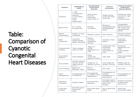 Table: Comparison of Cyanotic Congenital Heart Diseases