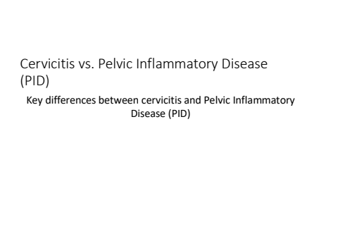 Cervicitis vs. Pelvic Inflammatory Disease (PID)Key differences between cervicitis and Pelvic Inflammatory Disease (PID)