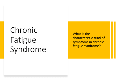 Chronic Fatigue SyndromeWhat is the characteristic triad of symptoms in chronic fatigue syndrome?